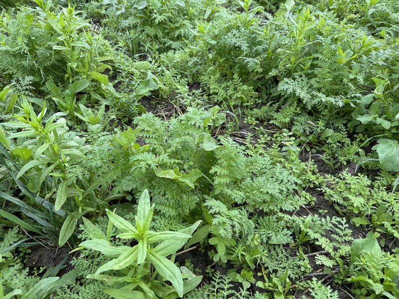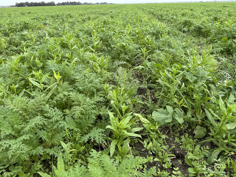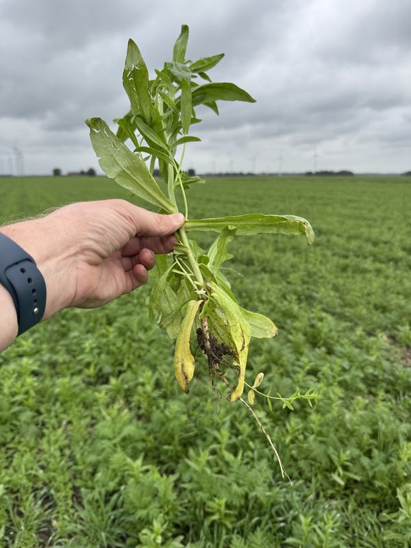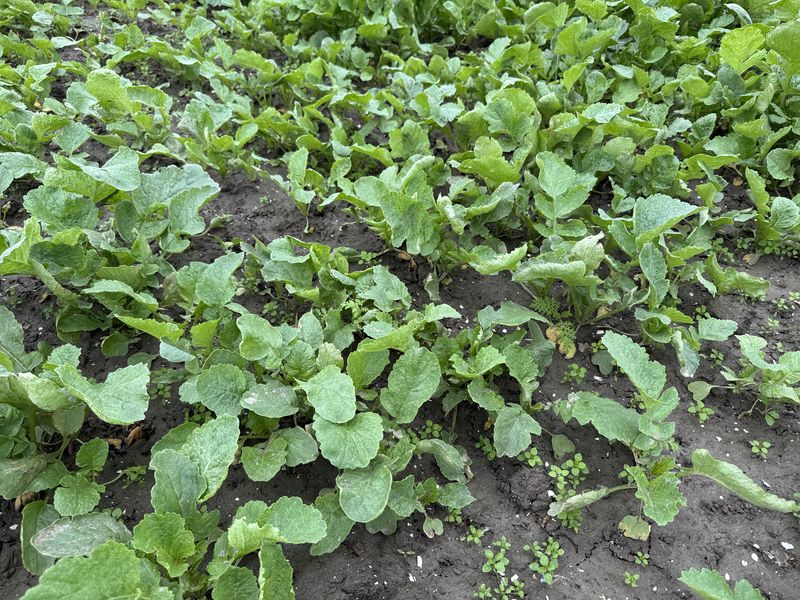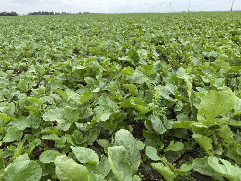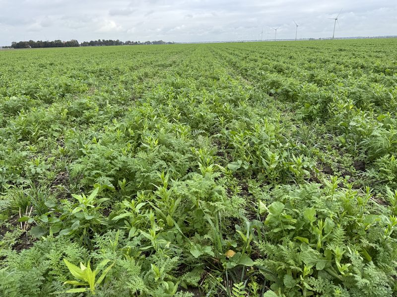 Gewasgroei bladrammenas met wat facelia. Perceel 2. Voorvrucht uien.