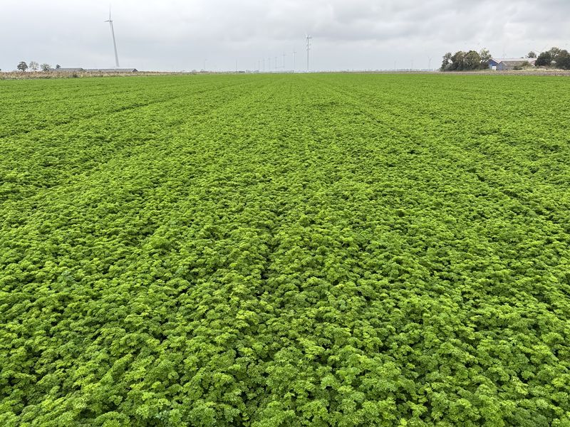 De peterselie groeit langzaam door. Lengte maximaal 20 cm. Er kan nog 1 snede gemaaid worden. Dat word dan de vierde. De oogst zal rond de 15e oktober liggen.