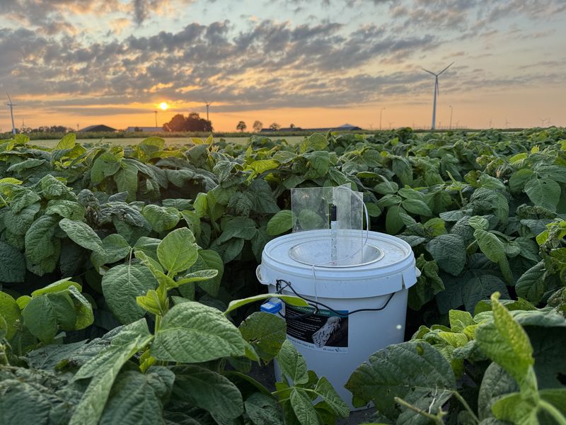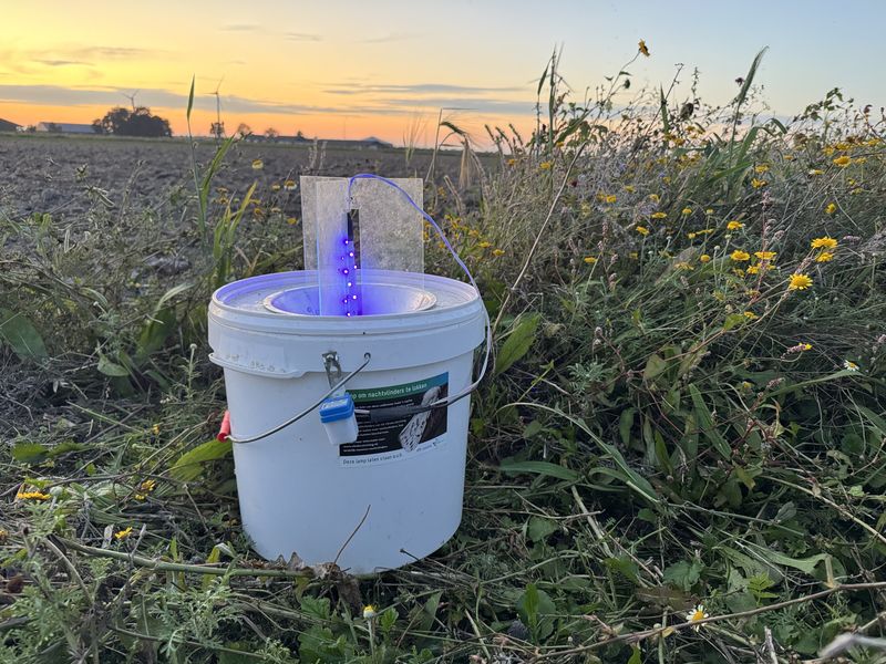 Ik tel de nachtvlinders met behulp van 3 LED emmers. Eens in de twee weken plaats ik deze emmers in de avond op 3 plekken op het bedrijf. 1 LED emmer in de tuin, 1 LED emmer in een akkerrand en 1 LED emmer in een akkerbouw perceel. Dit jaar in mijn geval edamame sojabonen.