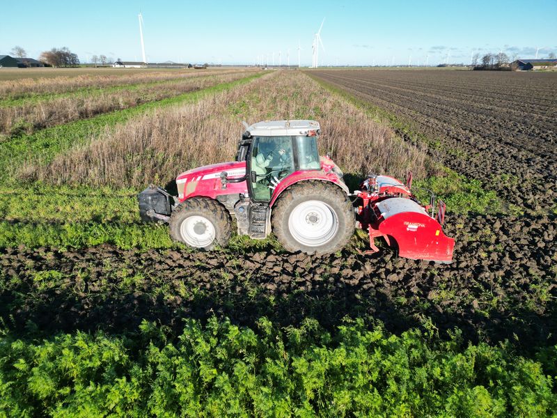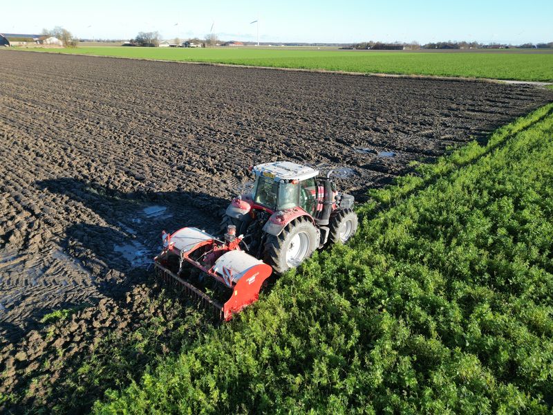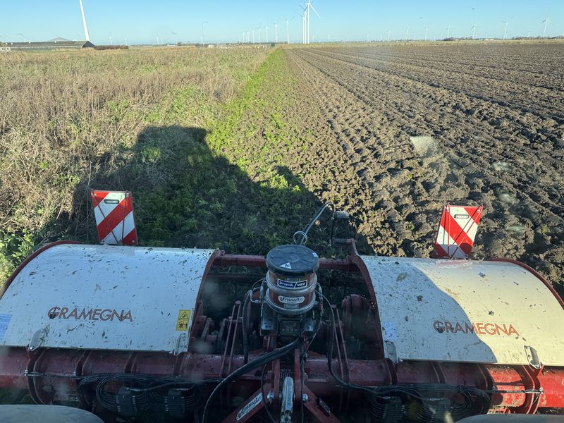 De kopakkers van het geploegde spitten we. Dit doen we met de Gramegna spitmachine. Deze hebben we gezamenlijk met 2 collega’s deze zomer aangeschaft. De oude Celli spitmachine was aan vervanging toe.