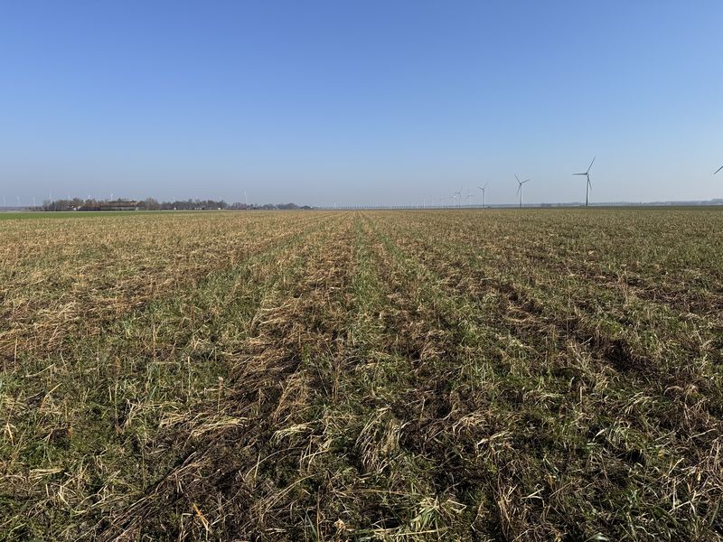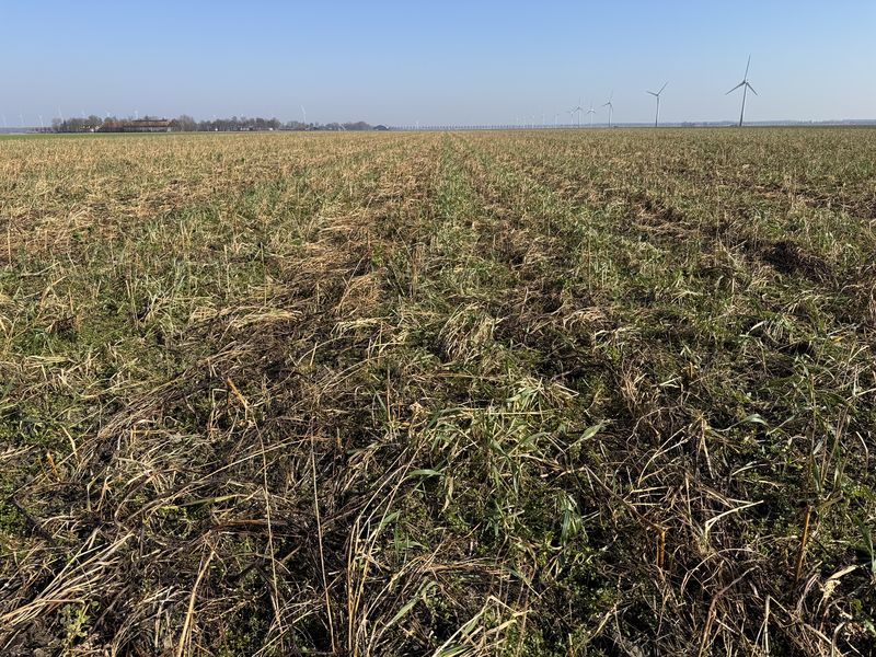 In de zomertarwe stoppel zaaien we dit jaar een groenbemester met de vlinderbloemige soorten, wikken, Alexandrijnse klaver en Serradella. Deze binden stikstof, wat goed is voor het volggewas wat in 2026 hier gaat groeien.