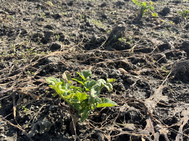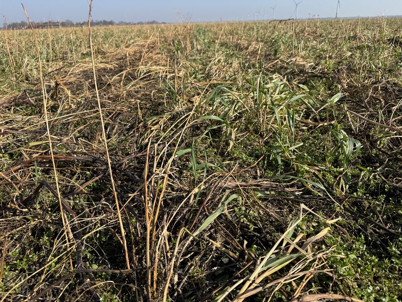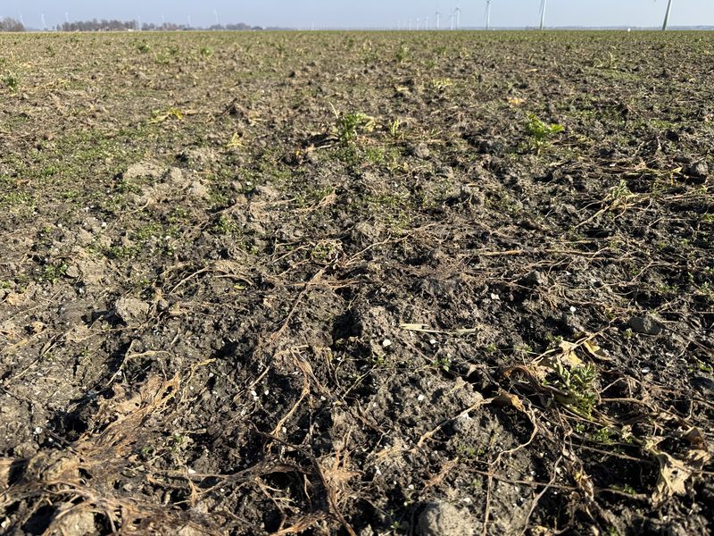Door de vorst hebben zijn de groenbemesters al behoorlijk afgestorven. Dat geld zeker voor de bladrammenas.